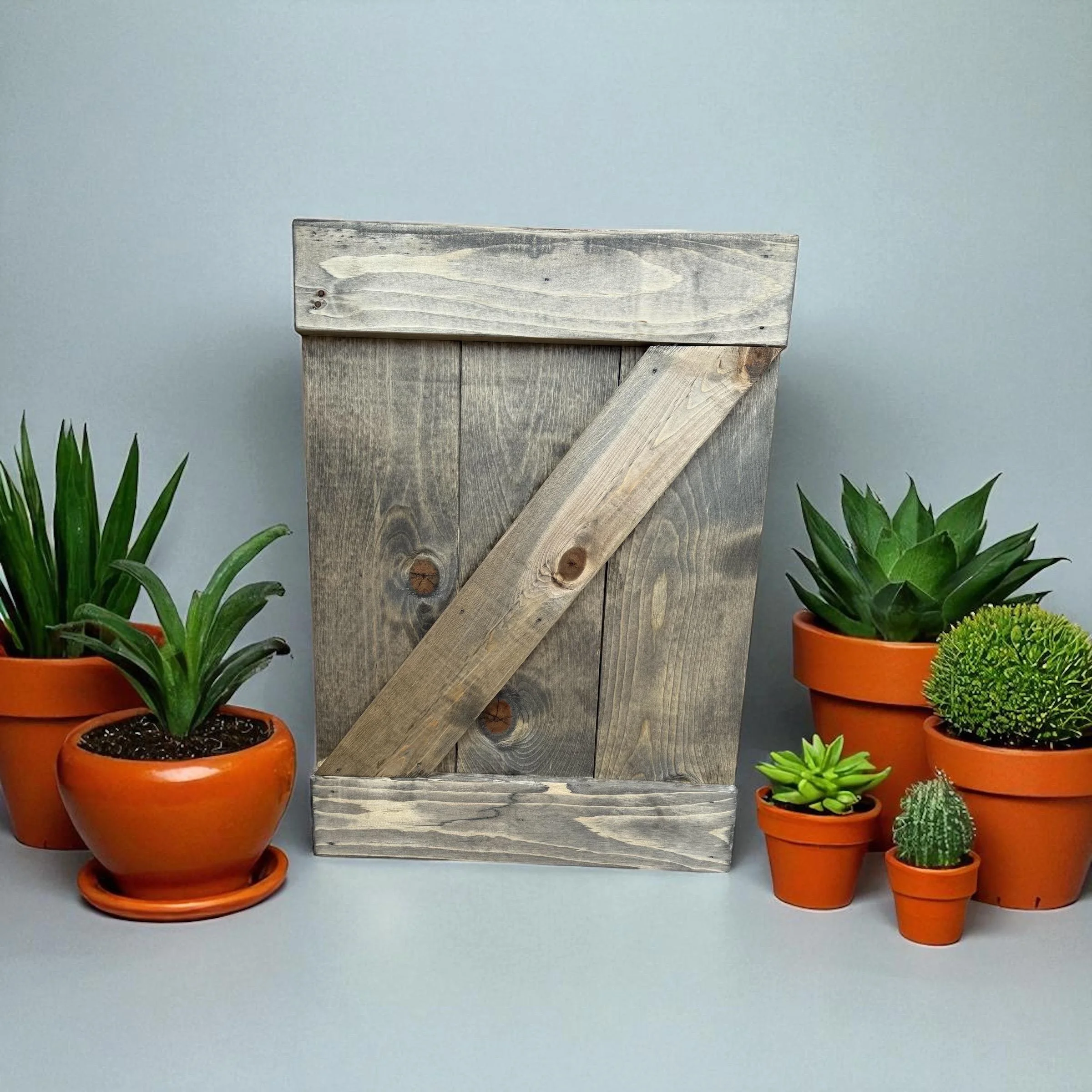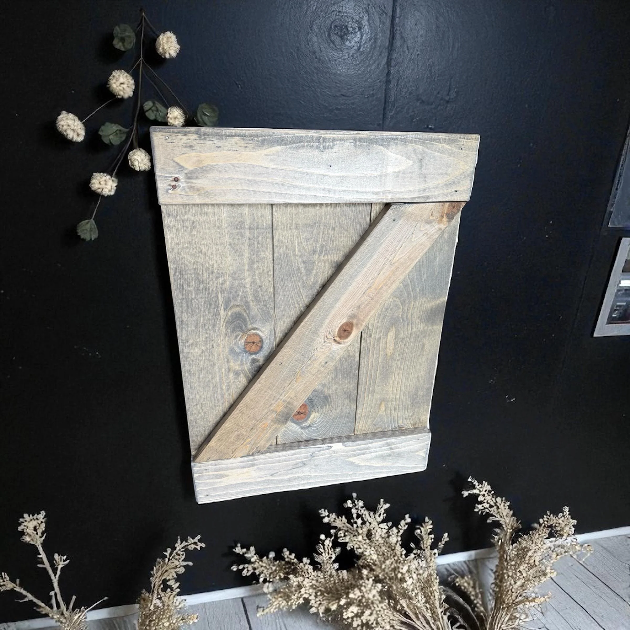 Add a versatile rustic touch to your decor! This faux barn door can be hung, or set on the floor.