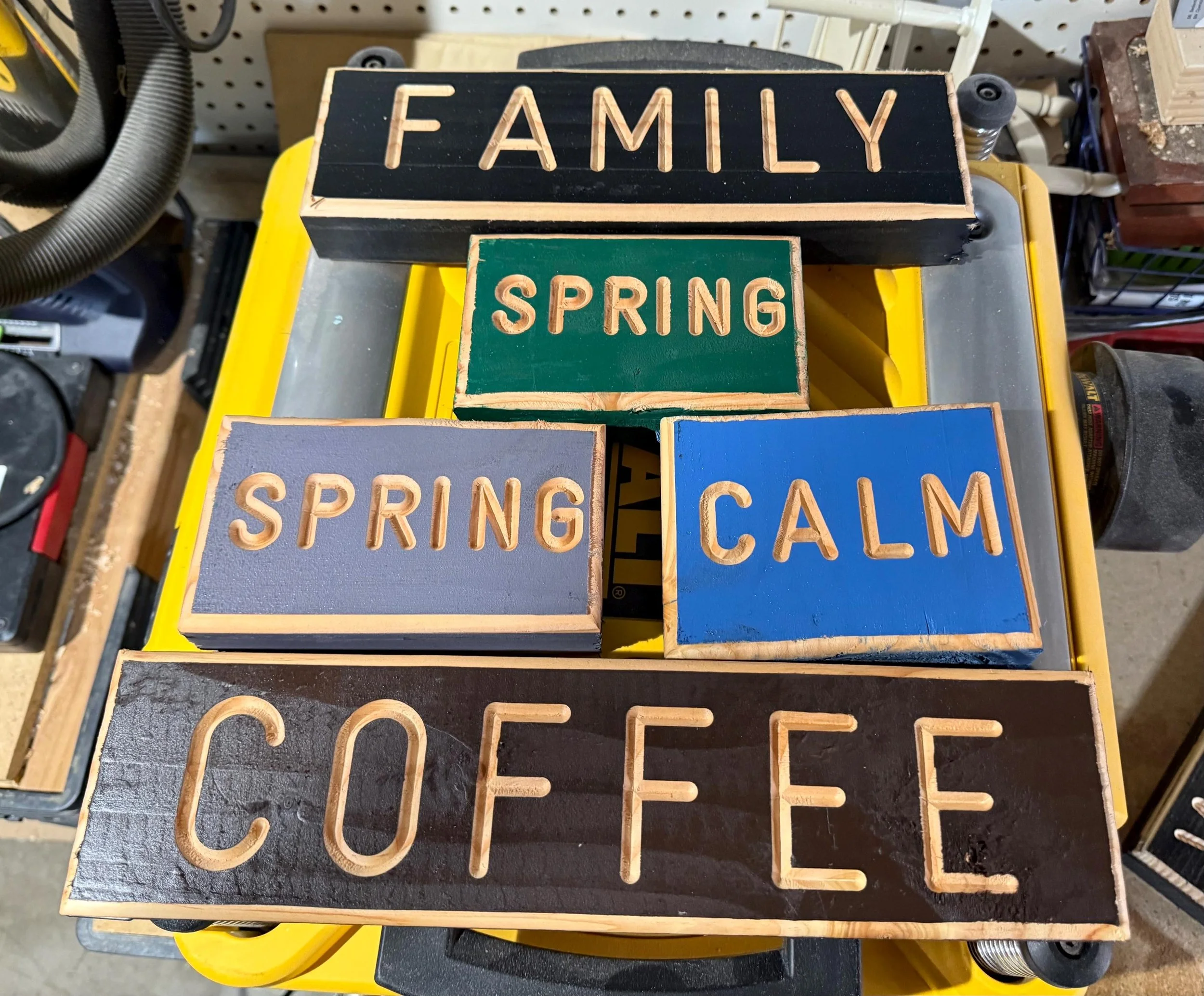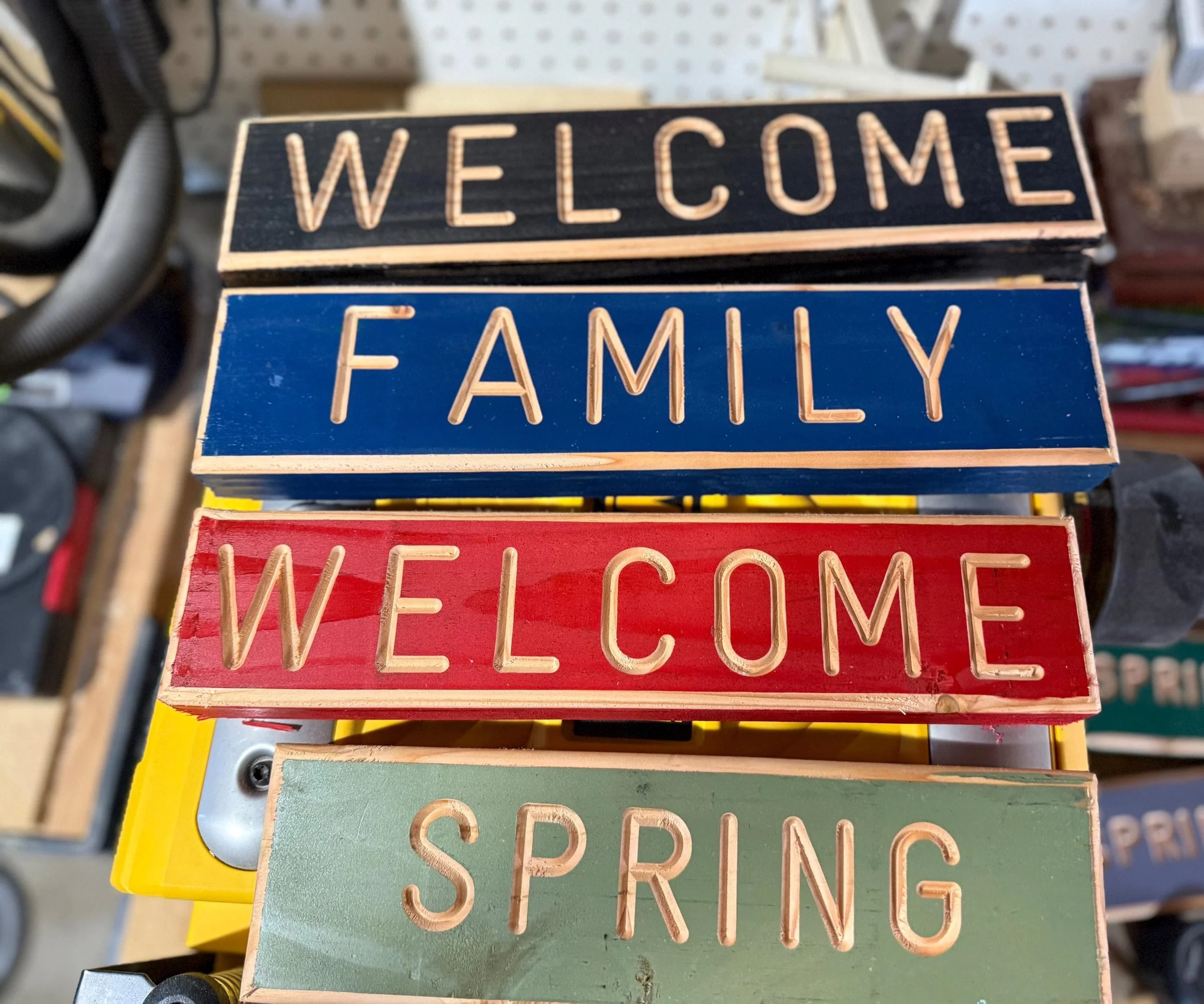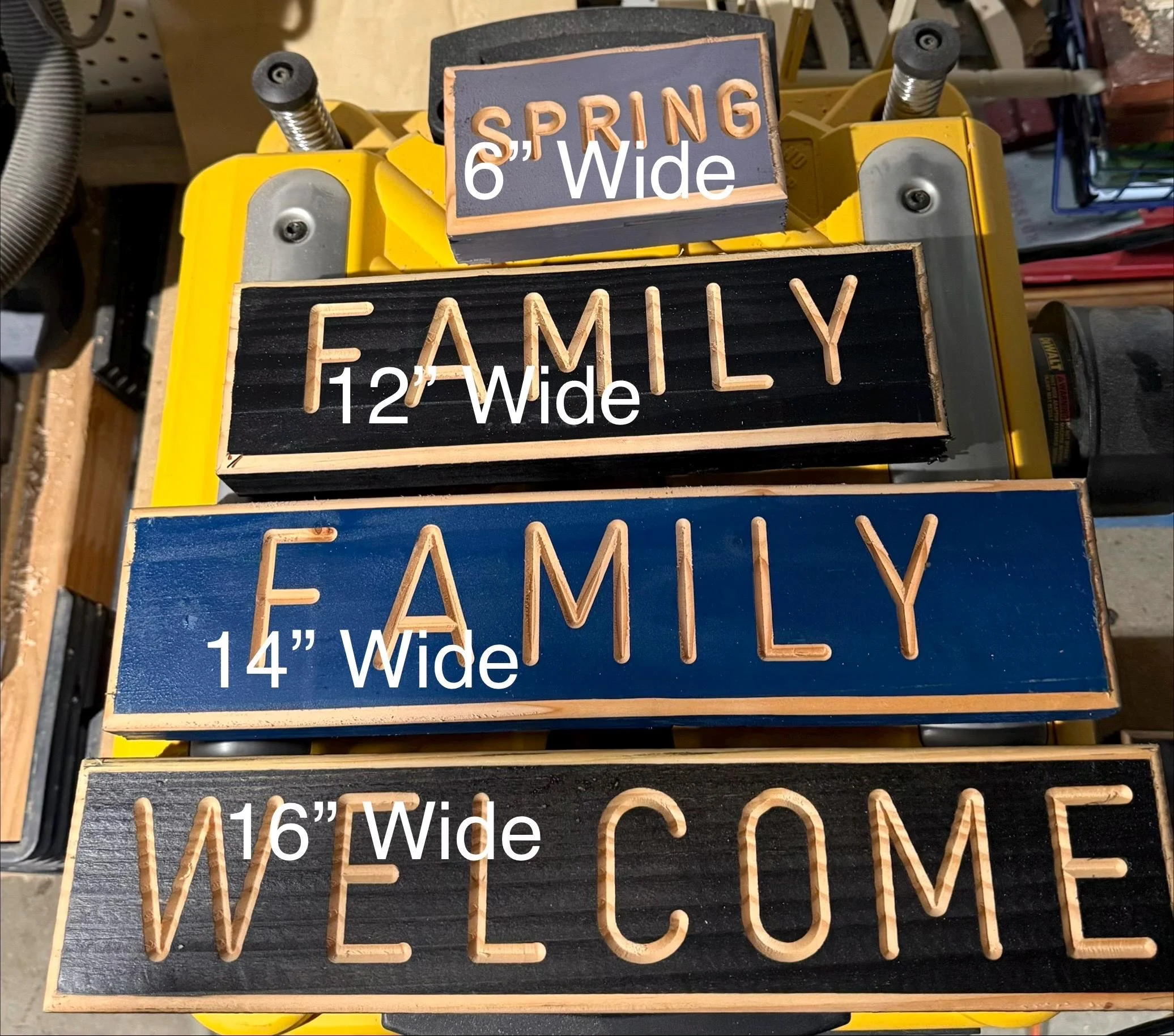 Each sign is made to order from solid wood, painted in your chosen color, and carved to reveal the natural wood beneath for a beautiful dimensional contrast. No vinyl. No overlays. Just real wood craftsmanship.