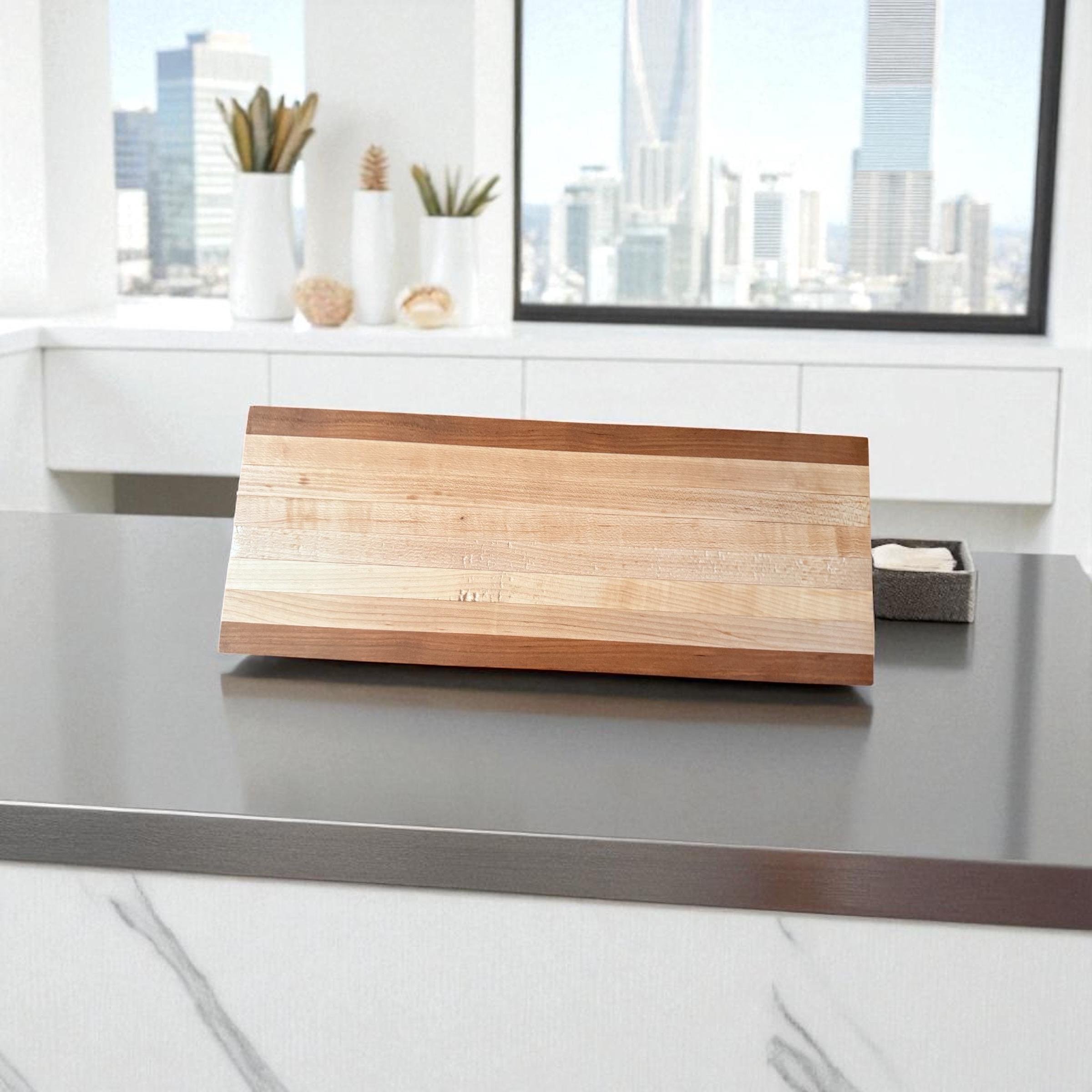 Bring timeless craftsmanship into your kitchen with this beautifully handcrafted cutting board, made from a rich combination of maple and cherry hardwoods. Its contrasting tones create a natural, elegant look that makes it just as stunning for serving as it is functional for prepping.