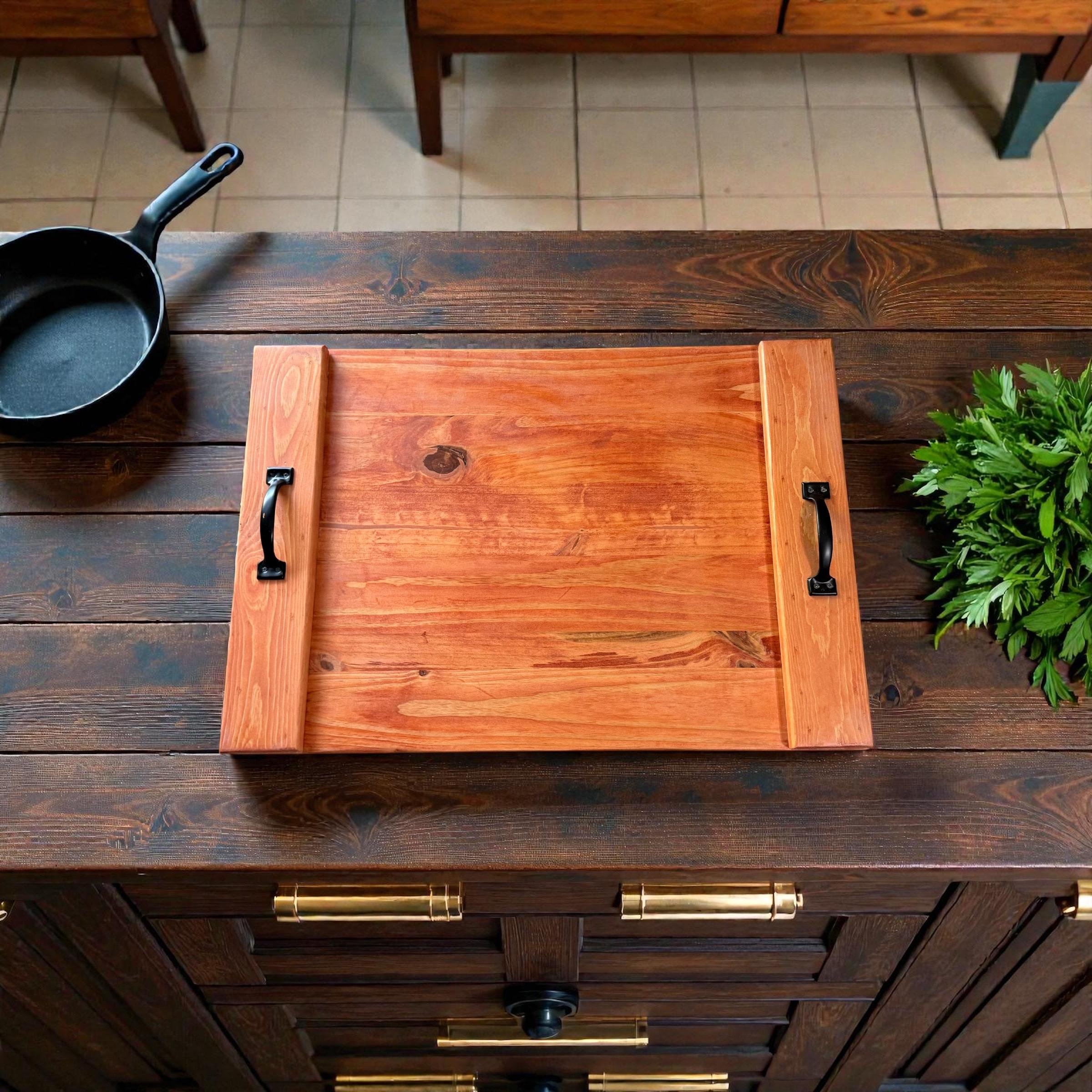 ✨ Features: • Handmade with solid wood for durability and charm • Smooth finish that’s easy to clean • Black metal handles for convenience and style • Expands your counter space instantly • Perfect for meal prep, serving, or as a decorative centerpiece